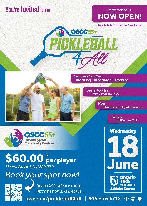 Hilda – A Pickleball Tournament will be held on June 18th being sponsored by the Oshawa Senior Citizens 55+ group. Our Rotary Club of Oshawa-Parkwood made a donation of $250 as a sponsor of the tournament.