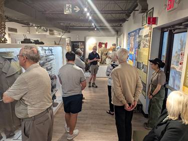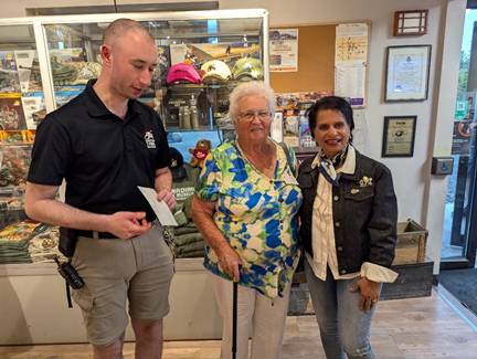 Hilda thanked Sam Richardson, Curator of the Museum, and guides and coordinator Andy Lyons (Past President of the Rotary Club of Oshawa-Parkwood) and presented The Canadian Tank Museum with a donation of $500.