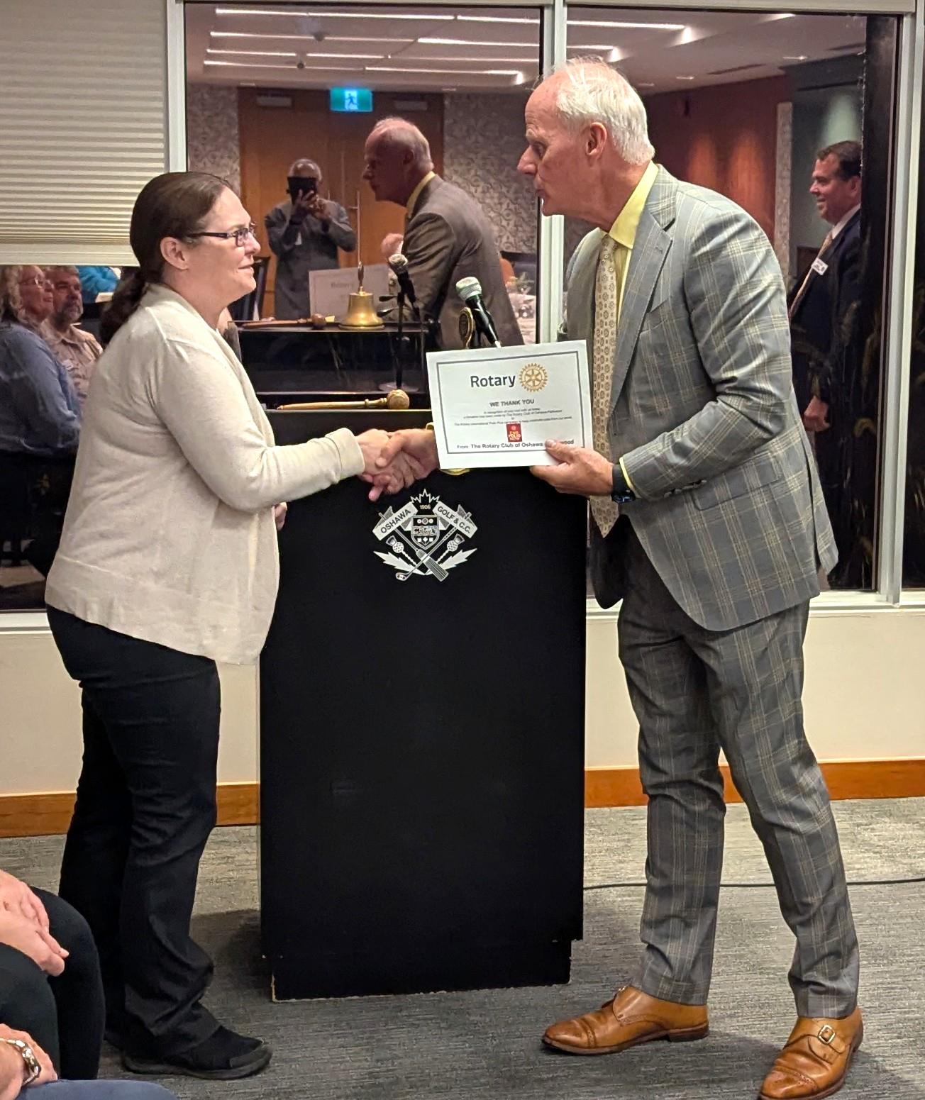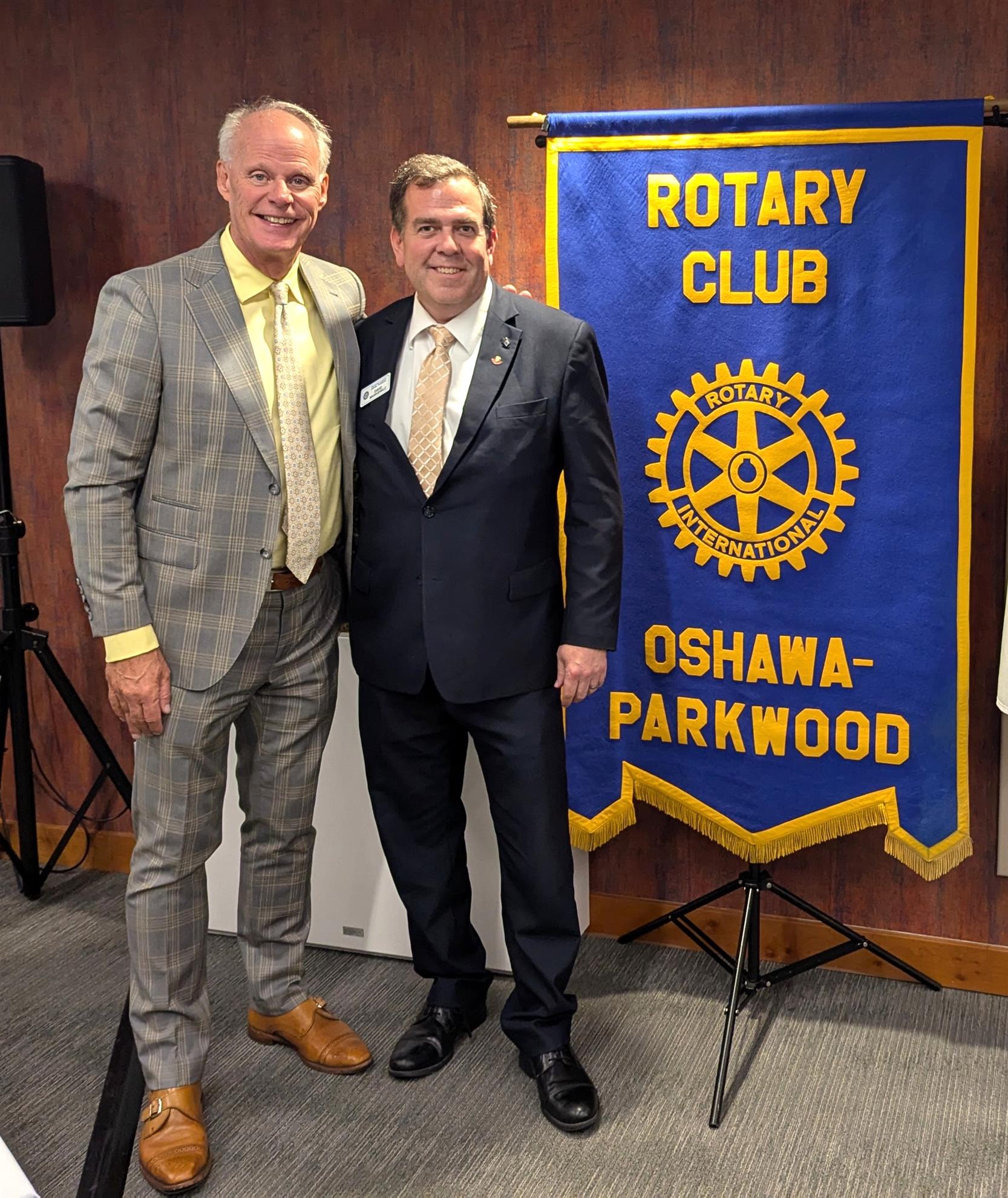 Dan Carter has led ‘The Great City of Oshawa’ as mayor since 2018. He ended his riveting talk by revealing the humbling effect this job has had on him, and when his term ends in November 2026, he will look back proudly. He was thanked by prospective member Yvonne Henry.
