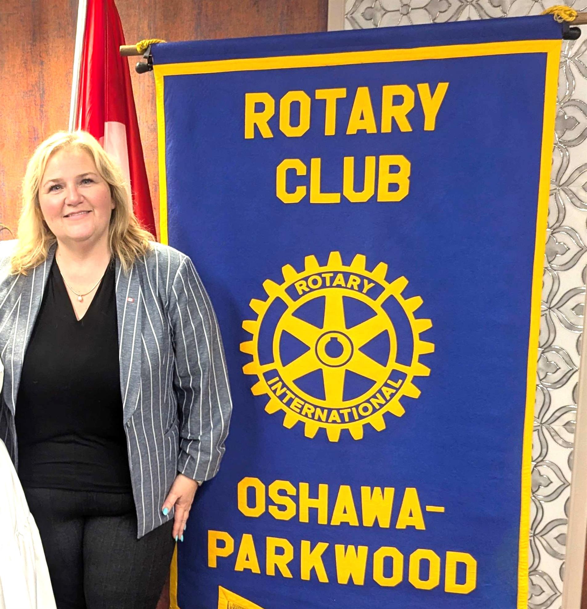 Dave A welcomed Rhonda (and Alex) to our meeting. Every year our club invites civic leaders to help us understand our community and Rhonda kicks off these talks tonight. Rhonda was elected to the House of Commons in April 2025 and is a member of the House Standing Committee on Public Safety and National Security. In her warm and genuine talk, Rhonda spoke of her commitment to the Oshawa community and our values. She thanked Alex Down for helping to smooth her transition from community leader to Member of Parliament. For Rhonda politics is about the people and not necessarily the just following the party-line. As a Rotarian, Rhonda learned about service and a sense of community. This prepared her for her new role in the House of Commons representing Oshawa. In fact, on her bench in the House, Rhonda placed a reminder that reads “This seat belongs to Oshawa.” When speaking of her highlights of the first 4 months as our representative, Rhonda experienced the pomp and circumstance of the formal opening, meeting King Charles, and surviving the rigors of new member training. She spoke for the first time in the House on June 3. Her holistic approach to government includes collaborating, watching, learning, listening, and waiting before jumping into an issue. As a ‘scrappy Oshawa girl’ Rhonda frames her legislative work with this statement, “if it is good for Oshawa and Canada I will vote for it.”