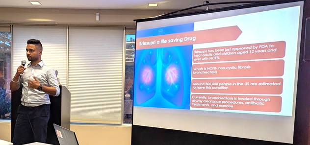 They came to Canada on Nov 7, 2003 escaping the Taliban in Afghanistan. After 9/11/2001, the family sought asylum with the Canadian Embassy. They finally got their papers, but by that time, USA had got into Afghanistan, and war broke out. So they walked across the mountains to Pakistan (where Asama Bin Laden was in hiding), got to Islamabad and the on to Canada. The airfare was paid by the Canada (they had 15 years to pay back the fare). They arrived in Canada not knowing the language or the culture, but they were happy to have a new life in Canada. Fahim remembers being brainwashed by the Taliban for 5 years, before they were able to get out. He joined Rotary because he can now give back to his community. Thank you to Shashi for making this possible. He sees that Rotary makes such a big difference to so many here, and throughout the world – such a powerful organization. He is a Canadian citizen but is still proud of where he came from. His family owns 2 Mr Subs (remembering that they came to Canada with $3 US in their pocket). He remembers getting toys at Christmas from service organizations when he was in his early teens. Amamdeep Singh decided to talk about the two very current events from the organizations where he currently works and where he previously worked. Amandeep is in Pharmaceutical research where he manages the scientists at Thermo Fisher Scientific in Whitby. Born in Punjab, he still has his father. His Mother has passed on. He plays cricket and so does his son. In 2016, they moved to Oshawa, having attend university in India. He remembers really liking the snow – something he was not used to in India, but that love of the snow soon passed over time. Before joining the pharmaceutical industry, he was a police officer for 2 years. Amamndeep talked about the development and approval of a new drug called Brinsupri ™ brensocatib) for the Treatment of Non-Cystic Fibrosis Bronchiectasis, that his company tested form the beginning starting in 2016, and just received FDA approval in 2025. It will be manufactured for Insmed. The drug when taken in pill form . is the only drug required to help fight NCFB) . one pill versus a number of medications that were required for people suffering from NCFB.